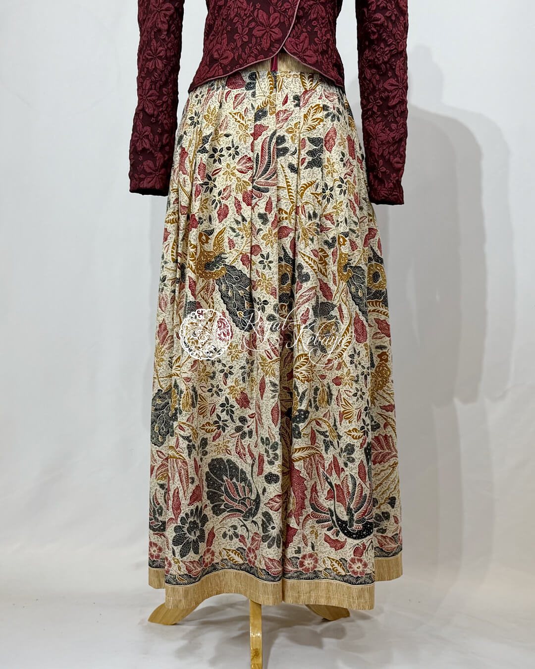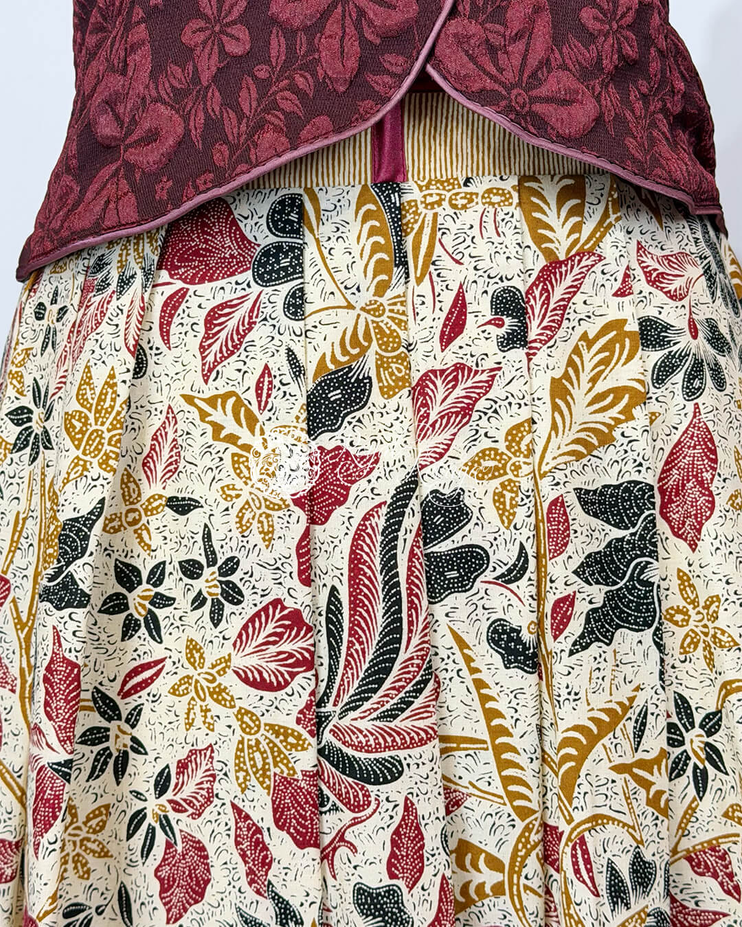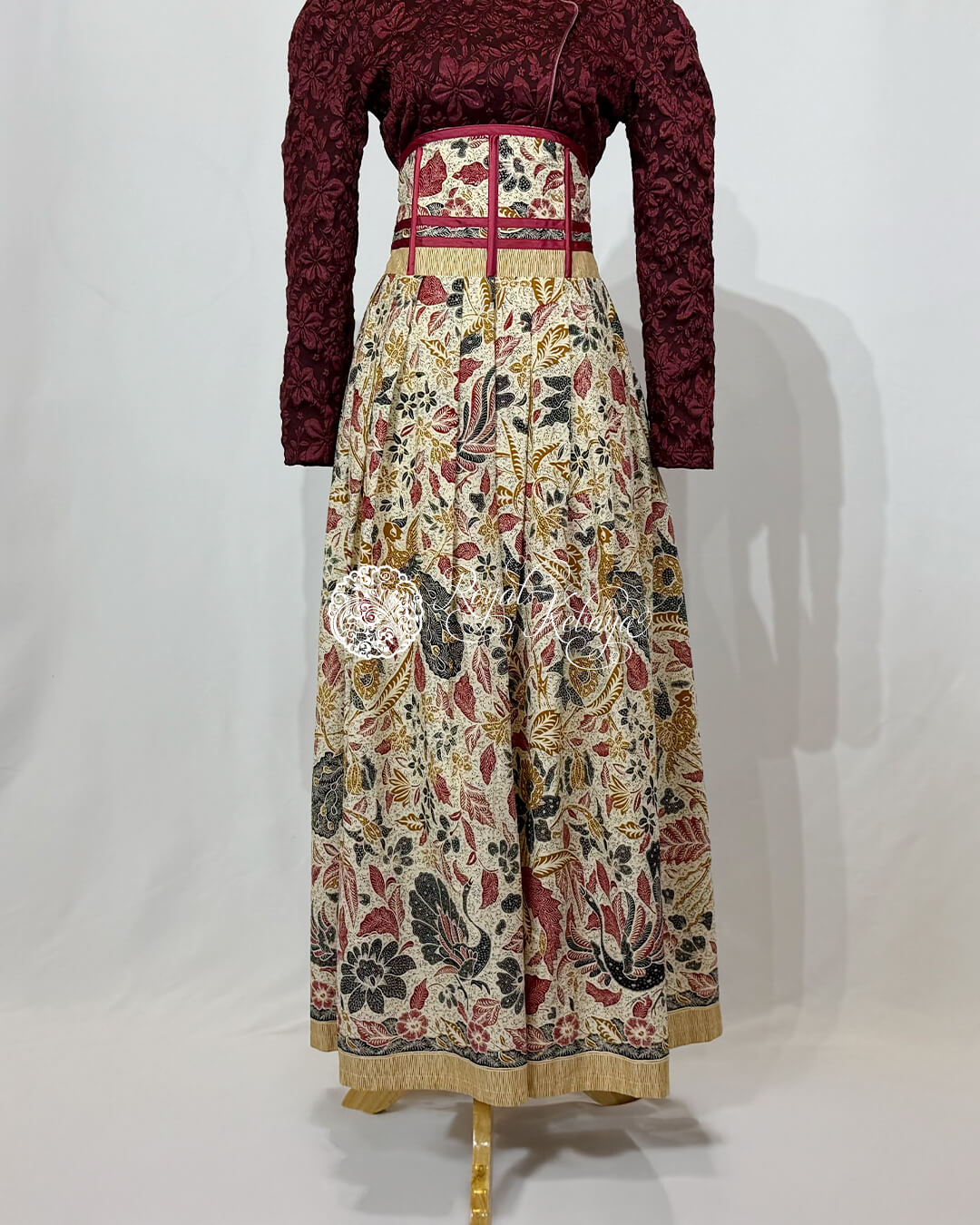 Tamanna High-Waist Structured Skirt in Ivory Cream and Deep Crimson