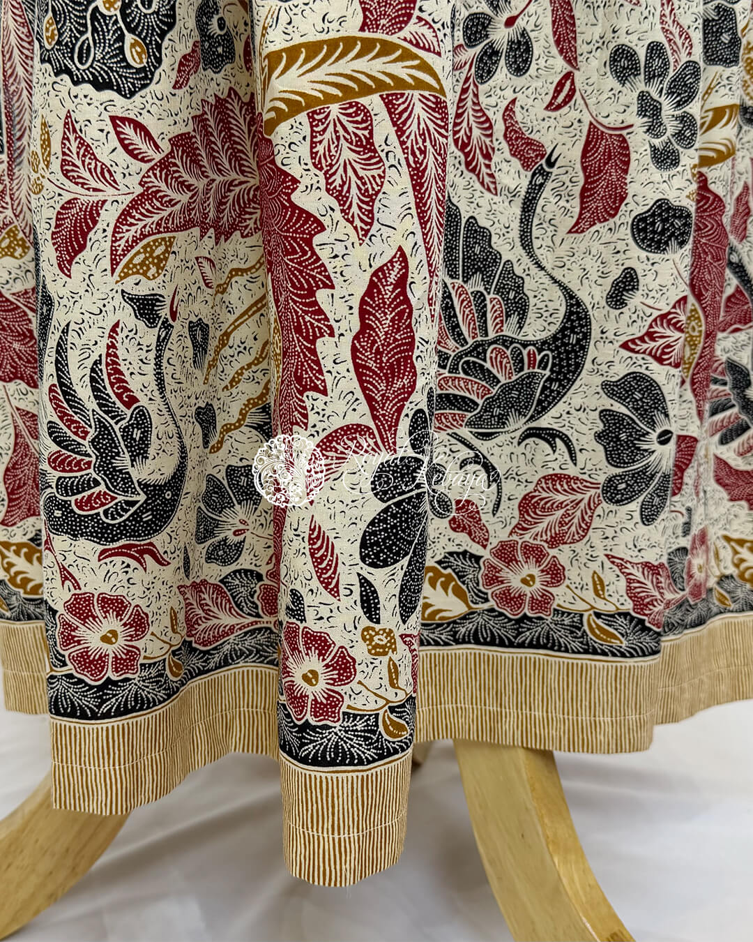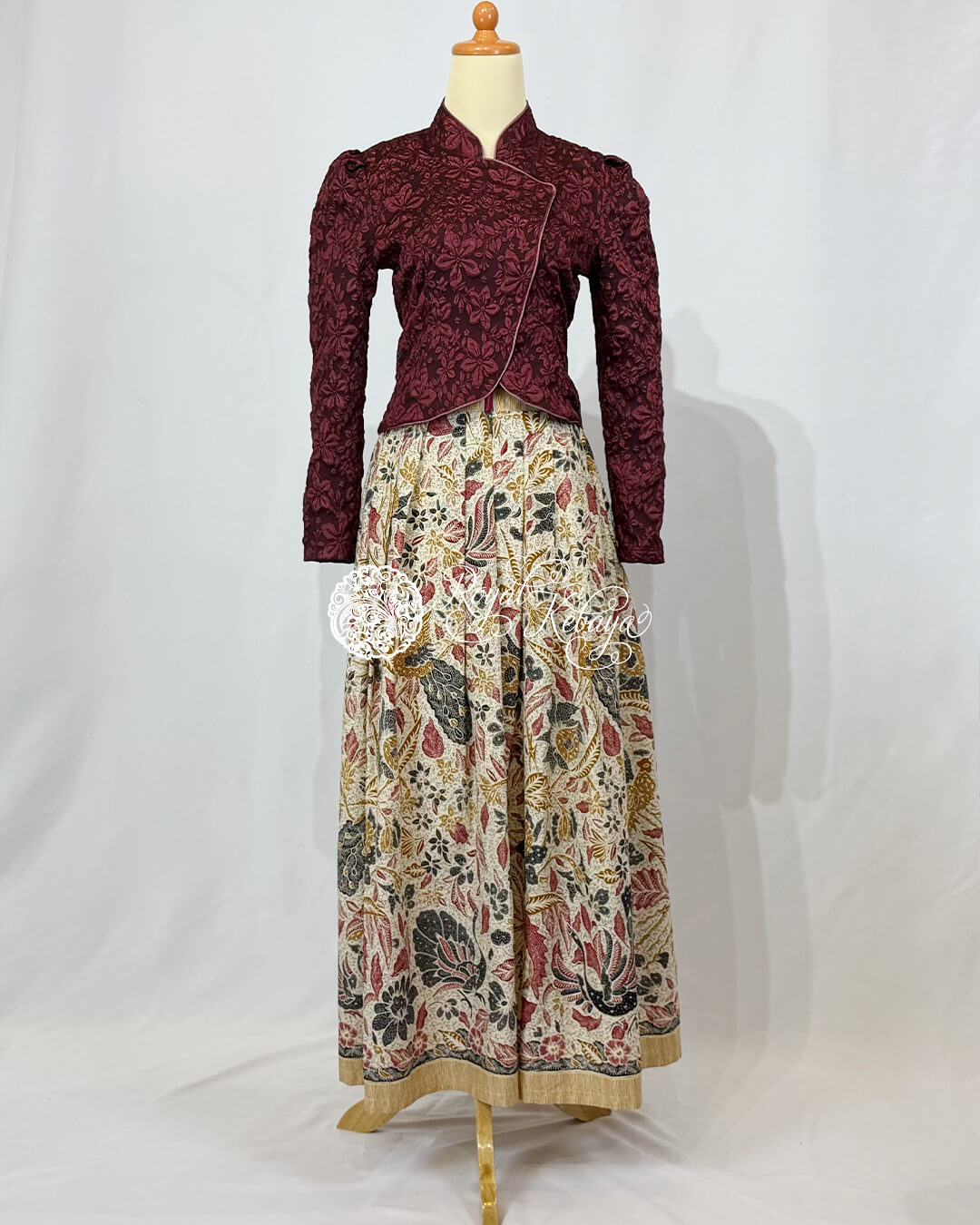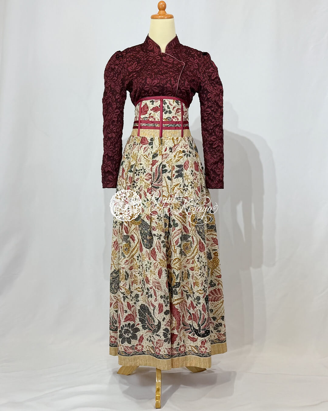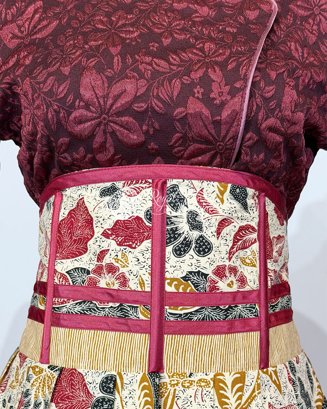 Tamanna High-Waist Structured Skirt in Ivory Cream and Deep Crimson